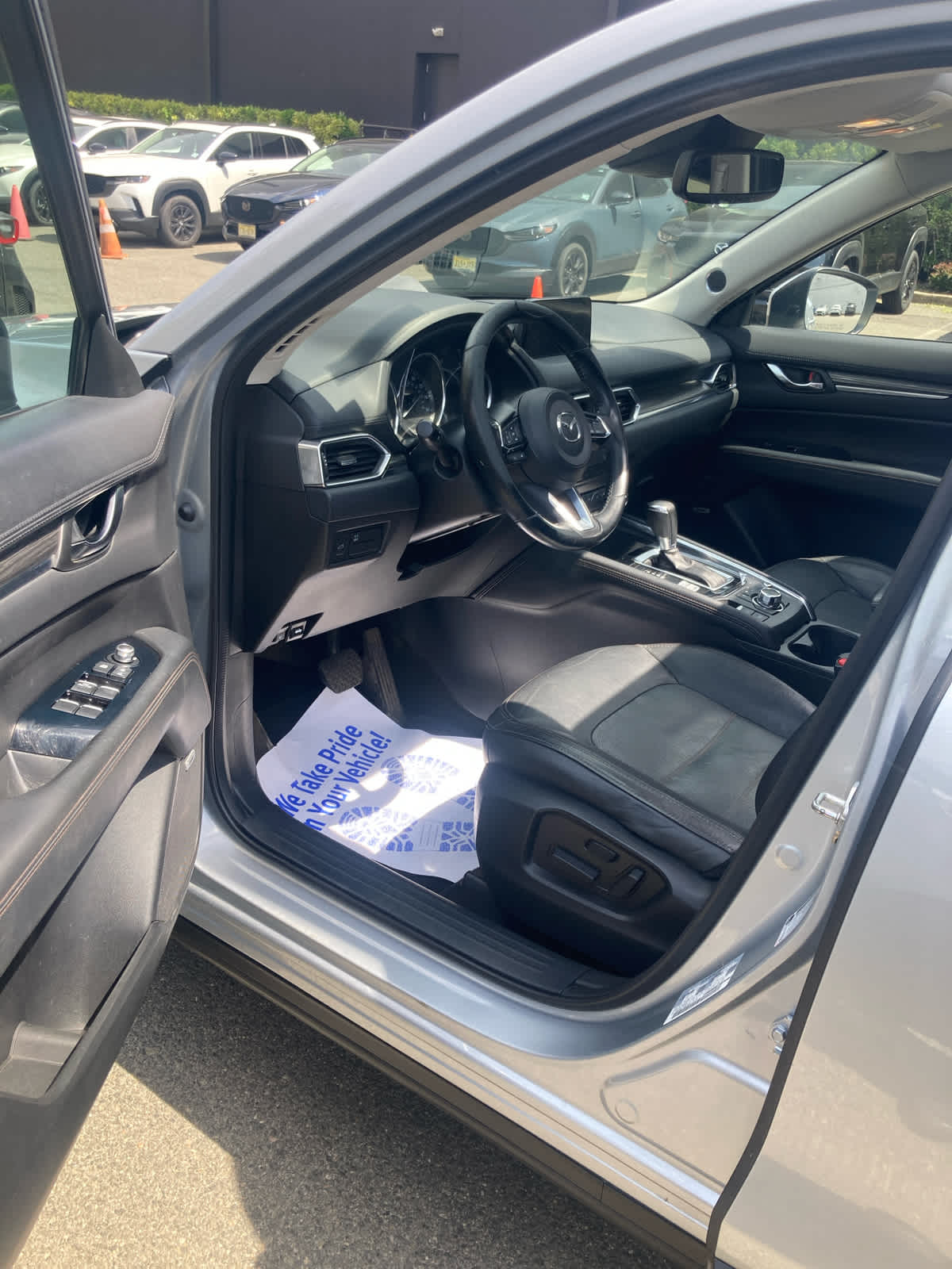 Leather Seats, Navigation, Sunroof, Power Liftgate, Heated Driver Seat, Back-Up Camera, Premium Sound System, Satellite Radio, iPod/MP3 Input, Onboard Communications System, Aluminum Wheels, Keyless Start, Dual Zone A/C, Smart Device Integration, Blind Spot Monitor Rear Spoiler, MP3 Player, Remote Trunk Release, Privacy Glass, Keyless Entry. Mazda CX-5 Grand Select with Sonic Silver Metallic exterior and Black interior features a 4 Cylinder Engine with 187 HP at 6000 RPM*. Non-Smoker vehicle, Local Trade